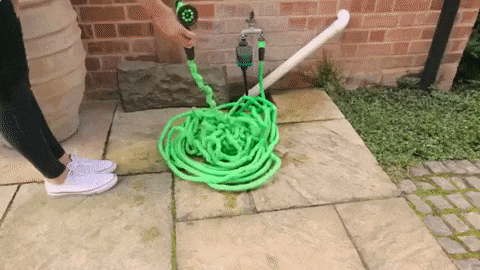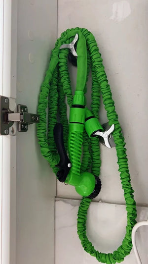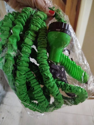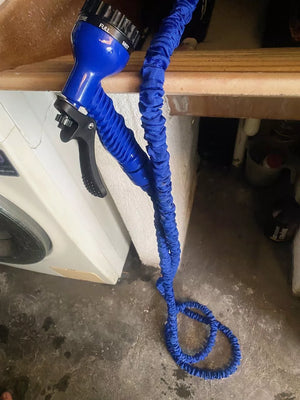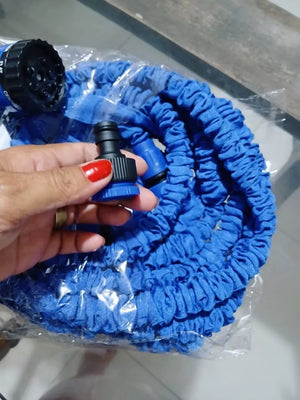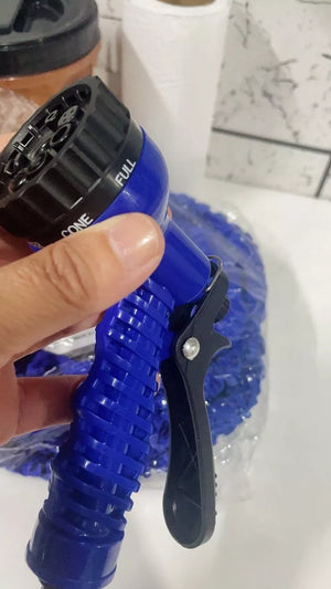 Olvídate de las peleas con el caucho pesado. Esta tecnología se expande con el flujo de agua y se encoge sola al terminar. Es ligera, no se dobla y cabe en la palma de tu mano al guardarla. Limpiar el patio o lavar el carro vuelve a ser una actividad relajante.