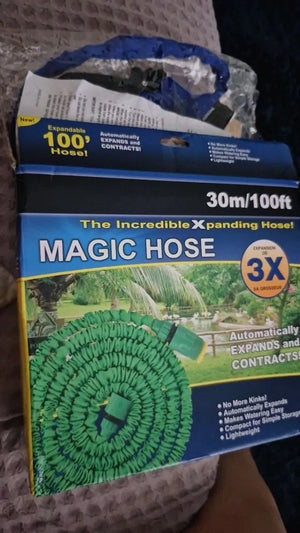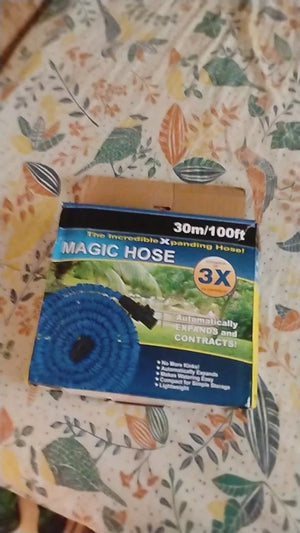 Conéctala a tu llave normal y abre el agua. Verás cómo crece mágicamente hasta los 30 metros. Cuando termines, cierra la llave y ella solita expulsará el agua sobrante mientras regresa a su tamaño mínimo para guardarla en un cajón.